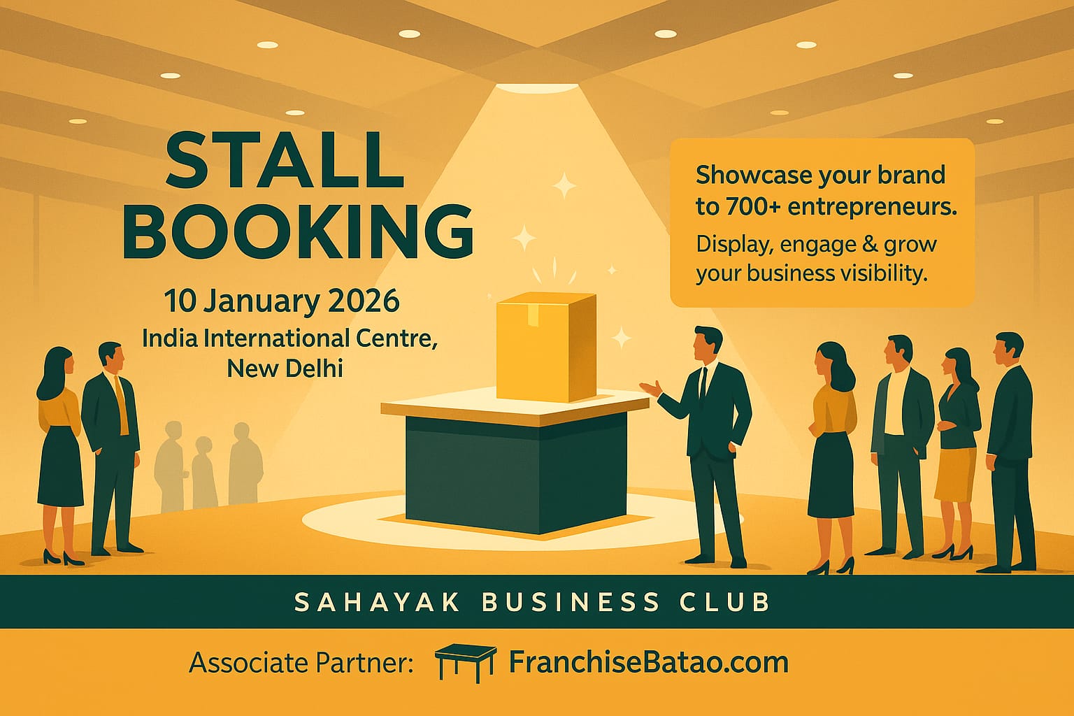 Book your stall today and showcase your brand to 700+ entrepreneurs! Build new connections, generate leads, and grow your business at Sahayak Business Expo 2026