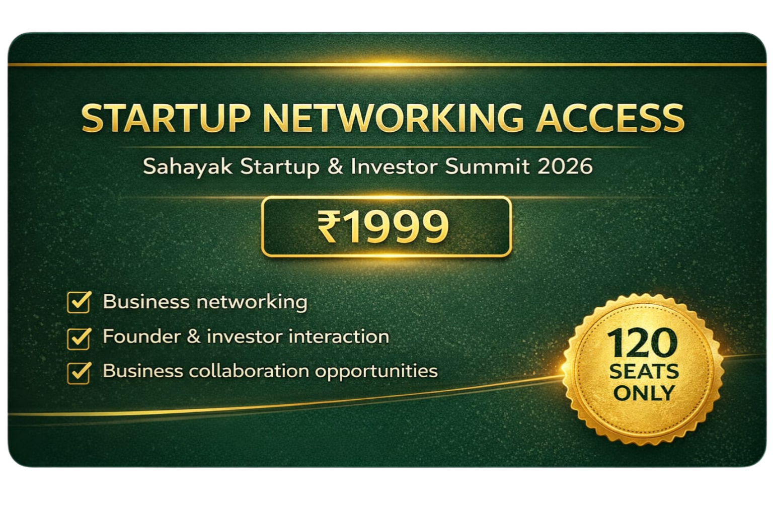 Sahayak Startup & Investor Summit 2026 is a high-impact startup pitch and business networking event designed to connect founders with investors, mentors, and industry leaders — all in one place.